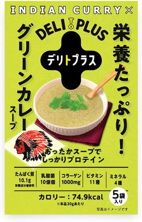 DELI PLUS 綠咖喱湯 5包裝 使用印度咖喱粉 蛋白質 營養 簡單烹飪 乳酸菌 膠原蛋白 維生素 即席湯 平衡營養 健康習慣 置換 時間短 蛋白質 DELI TO PLUS